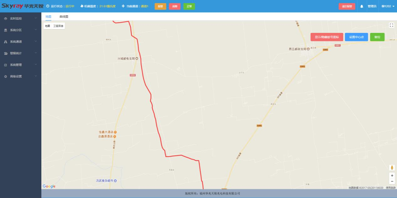 天然氣管線泄漏安全監(jiān)測系統(tǒng)采用目前先進(jìn)的管道溫度系統(tǒng)監(jiān)測技術(shù)。僅用天然氣管線中的通訊光纜的一根光纖就可實(shí)現(xiàn)長達(dá)幾十公里的天然氣管道泄漏定位報(bào)警。通過基于通訊光纜的分布式光纖測溫技術(shù),對(duì)天然氣管線進(jìn)行在線溫度分布監(jiān)測,就能夠通過管道溫度異常點(diǎn)的探測,準(zhǔn)確發(fā)現(xiàn)管道的泄漏點(diǎn),并及時(shí)的進(jìn)行報(bào)警和定位。如果天然氣管線發(fā)生泄漏,高壓氣體的體積膨脹將引起漏點(diǎn)附近溫度的下降,分布式光纖測溫系統(tǒng)同樣可通過溫度異常點(diǎn)的探測,發(fā)現(xiàn)并定位天然氣管線的泄漏點(diǎn)。通過對(duì)天然氣管線進(jìn)行在線的分布式溫度監(jiān)測,并將系統(tǒng)設(shè)備接入管道監(jiān)測系統(tǒng)局域網(wǎng),通過網(wǎng)絡(luò)信號(hào)可將溫度信息上傳給中央服務(wù)器。可在整個(gè)天然氣管線線路發(fā)生管道泄漏以及事故初期階段,第一時(shí)間發(fā)現(xiàn)并報(bào)告預(yù)警點(diǎn)的具體位置、溫度變化、溫度下降走向等信息數(shù)據(jù),為天然氣管線管理部門及其它相關(guān)部門及時(shí)定位、分析可能發(fā)生的管道泄漏事故提供可靠堅(jiān)實(shí)的信息獲取手段,為天然氣管線系統(tǒng)安全運(yùn)行提供高效的安全保障。本系統(tǒng)具有本質(zhì)防爆、抗強(qiáng)電磁干擾、電絕緣性好、防雷擊、高精度、重量輕、體積小等優(yōu)點(diǎn),適合在易燃、易爆等高危環(huán)境應(yīng)用。設(shè)備聯(lián)網(wǎng)后,通過載入百度地圖顯示光纜所在位置地圖,并設(shè)定中心點(diǎn),選定當(dāng)?shù)厮谖恢茫筛鶕?jù)管道的走向在地圖上標(biāo)出光纜走向圖,當(dāng)發(fā)生報(bào)警時(shí),界面會(huì)出現(xiàn)一個(gè)彈窗,顯示報(bào)警地點(diǎn),報(bào)警時(shí)間等。